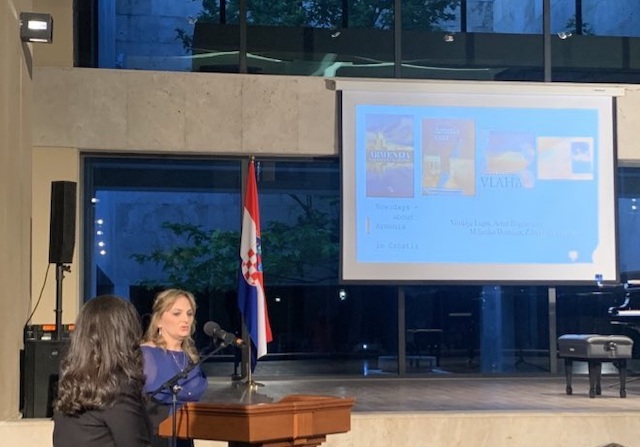 | UZ 30. OBLJETNICU USPOSTAVE DIPLOMATSKIH ODNOSA IZMEĐU REPUBLIKE ARMENIJE I REPUBLIKE HRVATSKE I UZ DAN DRŽAVNOSTI I DAN NEOVISNOSTI REPUBLIKE HRVATSKE U ARMENIJI GOSTOVALI HRVATSKI GLAZBENICI Koncerte pod nazivom ‘Glazbeni pozdravi Armeniji iz Hrvatske‘ i ‘Hrvatska sakralna baština – pjevajuća molitva na izvoru kršćanstva‘, te humanitarni koncert za Armenski Caritas pod nazivom ‘Glazbeni zagrljaj Armeniji iz Hrvatske‘ održali su hrvatski glazbeni umjetnici, sopranistica Nikolina Pinko, koja je nastupila u Yerevanu 11. lipnja 2024. u Komitas Muzeju – Institutu i tenor Stjepan Franetović koji je nastupio 25. lipnja u Gyumriju u Katedrali Svete Bogorodice od sedam žalosti, Armenske Apostolske Crkve, uz pijanisticu i orguljašicu Evu Kirchmayer Bilić. Koncerti su održani u organizaciji Ministarstva vanjskih i europskih poslova Republike Hrvatske, Veleposlanstva Republike Hrvatske u Ateni i Hrvatskog počasnog Konzulata Republike Hrvatske u Republici Armeniji. Stjepan Franetović i Eva Kirchmayer Bilić nastupili su u Gyumriju i na dobrotvornome koncertu za Armenski Caritas, za pomoć starijima i nemoćnima u Armeniji, 24. lipnja u Komornoj gradskoj dvorani, na kojemu je s hrvatskim umjetnicima nastupila i armenska pijanistica Arpi Vardanyan, koja je 2021. diplomirala klavir na zagrebačkoj Muzičkoj akademiji u klasi prof. Rubena Dalibaltayana. U okviru projekata kulturne promidžbe, javne diplomacije i međunarodne prepoznatljivosti Republike Hrvatske u organizaciji Ministarstva vanjskih i europskih poslova Republike Hrvatske i diplomatsko – konzularnih predstavništava Republike Hrvatske u svijetu, te povodom Dana državnosti i Dana neovisnosti Republike Hrvatske, kao i uz 30. obljetnicu uspostave diplomatskih odnosa između Republike Hrvatske i Republike Armenije, hrvatski glazbeni umjetnici, sopranistica Nikolina Pinko, tenor Stjepan Franetović i pijanistica i orguljašica Eva Kirchmayer Bilić, održali su svečane koncerte u Republici Armeniji: 11. lipnja u Yerevanu i 25. lipnja u Gyumriju. Podsjetimo, Armenija je prva kršćanska država na svijetu, koja je godine 301. prihvatila kršćanstvo, a na planini Ararat zaustavila se Noina arka; to je mjesto na kojemu novoga početka čovječanstva nakon velikoga potopa. Dana 8. srpnja 1994. uspostavljeni su diplomatski odnosi između Republike Armenije i Republike Hrvatske. Veleposlanstvo Republike Hrvatske za Armeniju, nalazi se u Grčkoj, a Republiku Hrvatsku u Armeniji predstavlja počasni konzul. Svečani koncert pod nazivom ‘Glazbeni zagrljaji Armeniji iz Hrvatske‘ održan je u utorak, 11. lipnja u punoj dvorani Komitas Muzeja - Instituta u Yerevanu u Armeniji, na kojemu su nastupile sopranistica Nikolina Pinko i pijanistica Eva Kirchmayer Bilić, te izvele pomno odabrani, svečanosti i obljetnicama primjeren glazbeni program, a koji je uključivao skladbe hrvatskih, armenskih i europskih skladatelja. Na koncertu i prijemu nazočili su članovi diplomatskog zbora u Yerevanu, uzvanici iz kulturnog, društvenog i političkog života Armenije, a bio je nazočan zamjenik ministra vanjskih poslova Republike Armenije, g. Paruyr Hovhannisyan. Koncert i prijem su organizirani u suradnji i uz podršku Ministarstva vanjskih poslova Republike Hrvatske, Veleposlanstva Republike Hrvatske u Ateni i hrvatskog počasnog konzula u Erevanu g. Artashesa Kazakhetsyana, koji je ujedno bio i srdačan domaćin hrvatskim gostima. Na početku koncerta nazočne visoke uzvanike i goste biranim je riječima pozdravio veleposlanik Republike Hrvatske u Ateni g. Aleksandar Sunko, zahvalio Počasnome Konzulu, te iznio najznačajnije poveznice između armenskoga i hrvatskoga naroda, među kojima se ističu zaštitnik grada Dubrovnika, sv. Vlaho (Surb Barsegh) iz Sebaste u nekadašnjoj Maloj Armeniji, zatim isusovac Josip Marinović (napisao prvu povijest Armenaca na Zapadu), kao i gotovo tri stotine knjiga tiskanih u Armenskoj tiskari u Beču. Na pozdravni govor veleposlanika g. Aleksandra Sunka, nadovezala se Eva Kirchmayer Bilić, koja je održala izlaganje o početcima uspostave diplomatskih odnosa između Republike Hrvatske i Republike Armenije prije trideset godina i o zanimljivim kulturnim poveznicama. Nazočni uzvanici, gosti i prijatelji, pozdravnu riječ i izlaganje pratili su i razumjeli zahvaljujući pijanistici Arpi Vardanyan, koja je s hrvatskog, odnosno engleskog, prevodila na armenski, odnosno engleski jezik. Naime, Arpi je studirala i diplomirala klavir u Zagrebu, te tečno govori hrvatski jezik. Plakate i grafički dizajn programskoga letka za koncerte, osmislila je i priredila istaknuta likovna umjetnica Alina Gishyan, Armenka s hrvatskom adresom, povezavši hrvatske i armenske motive (pleter). ![]() Eva Kirchmayer Bilić i Stjepan Franetović