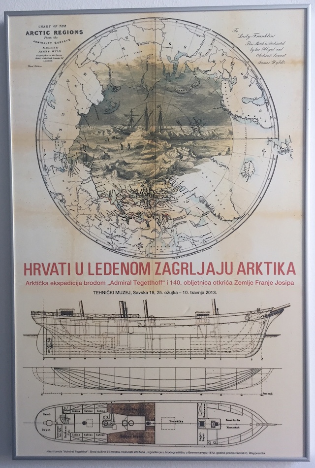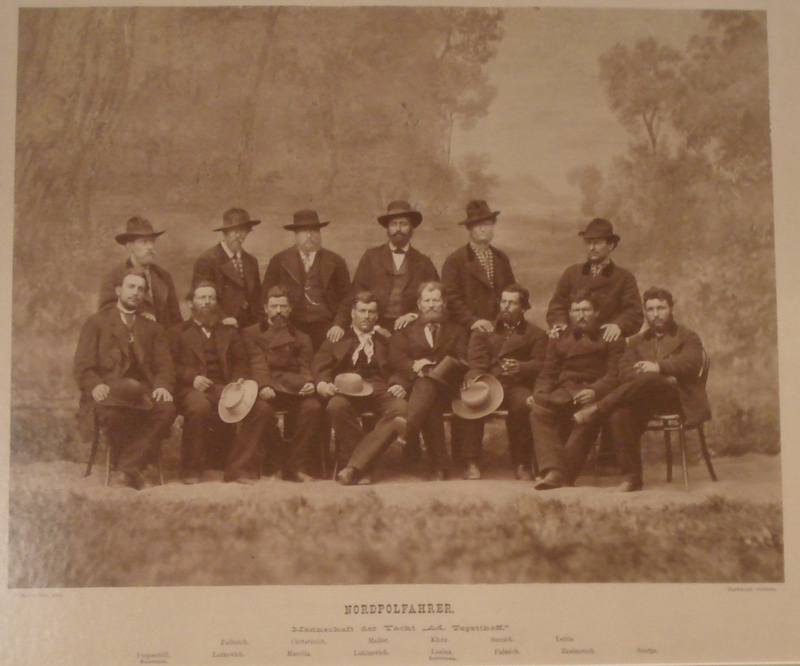 Many Arctic expeditions in the 19th century ended with shipwrecks. Probably the best known is Franklin’s expedition (1845) which had tragic human losses: as many as 120 people died. Twenty expeditions were organized in order to find and save them, but in vain. The Austrian-Hungarian state, which at that time included also Croatian coast, planned expedition to NE of Novaya Zemlya, and to find the so called North East Passage. This led to the discovery of Franz Josef Land in 1873, a collection of about 85 islands in the Arctic Ocean, now a Russian National Park called Zemlya Franca Iosifa. The ship named Tegetthoff was built up in the German port Bremen using a special new technology, in order to endure extremely low temperatures and dangerous ice pressure (32 m long, 7 m wide, 220 tons). The crew was composed of 24 persons, members of Austrian-Hungarian marine in the Adriatic sea. It is interesting that the Croats were predominant in the crew. It was composed 9 Austrians, 1 Hungarian, 1 Moravian Czech, 1 Italian (?), and as many as 12 Croats from various parts of Croatian coast (Rijeka, Cres, Bakar, Volosko, Lovran, Plomin, Mali Losinj, Brac, Hvar). The names of these Croatian mariners are: