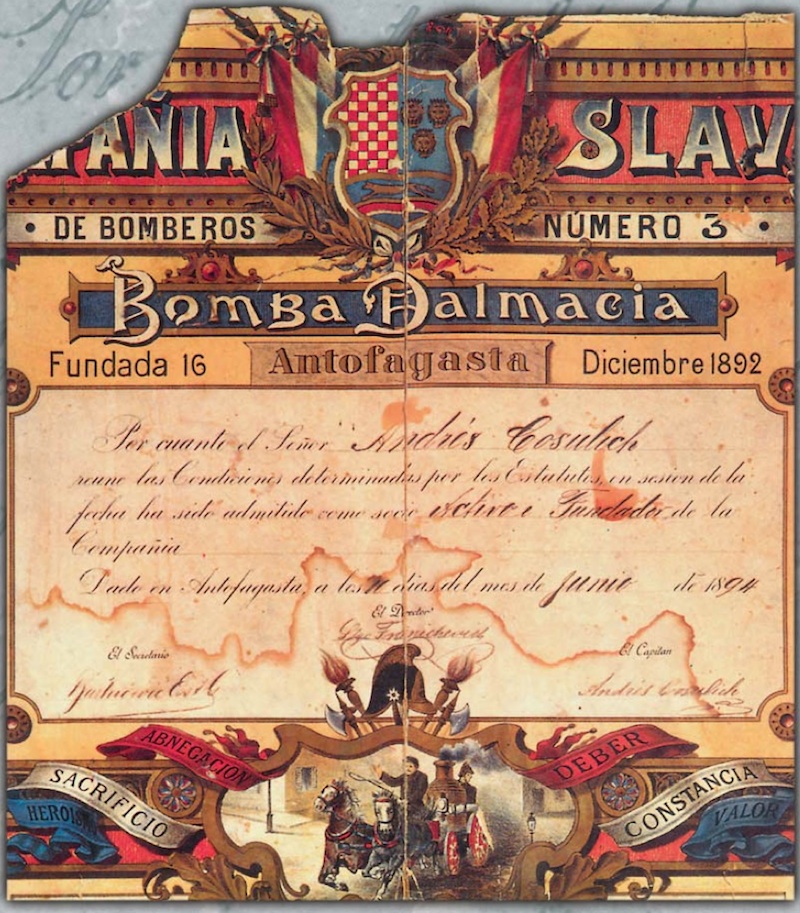 A Croatian journal in Antofagasta from 1892, decorated with the Coat of Arms