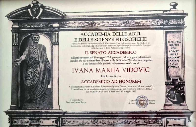 | Ivana Marija Vidović declared Honorary Academician in Italy
